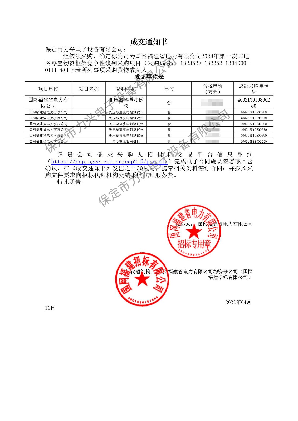 5. 2023.06.25 國(guó)網(wǎng)天津市電力公司2023年第三次物資競(jìng)爭(zhēng)性談判項(xiàng)目(中標(biāo)2個(gè)包)